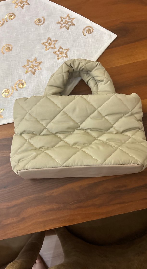 Bej Kadın Kapitone Kumaş Çanta