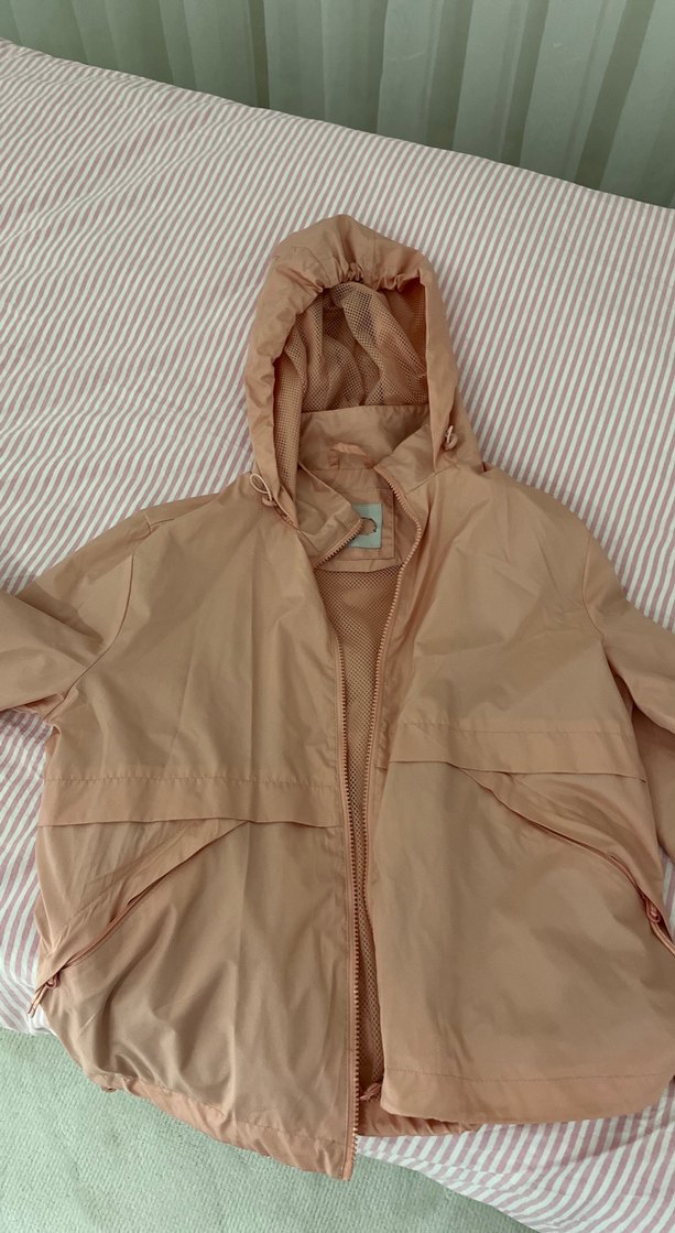 pembe renkli, kapüşonlu midi yağmurluk, bol kesim ve fermuarlı. Sentetik kumaştan, uzun kollu az kullanıldı butik ürünü oldugu için marka yoktu