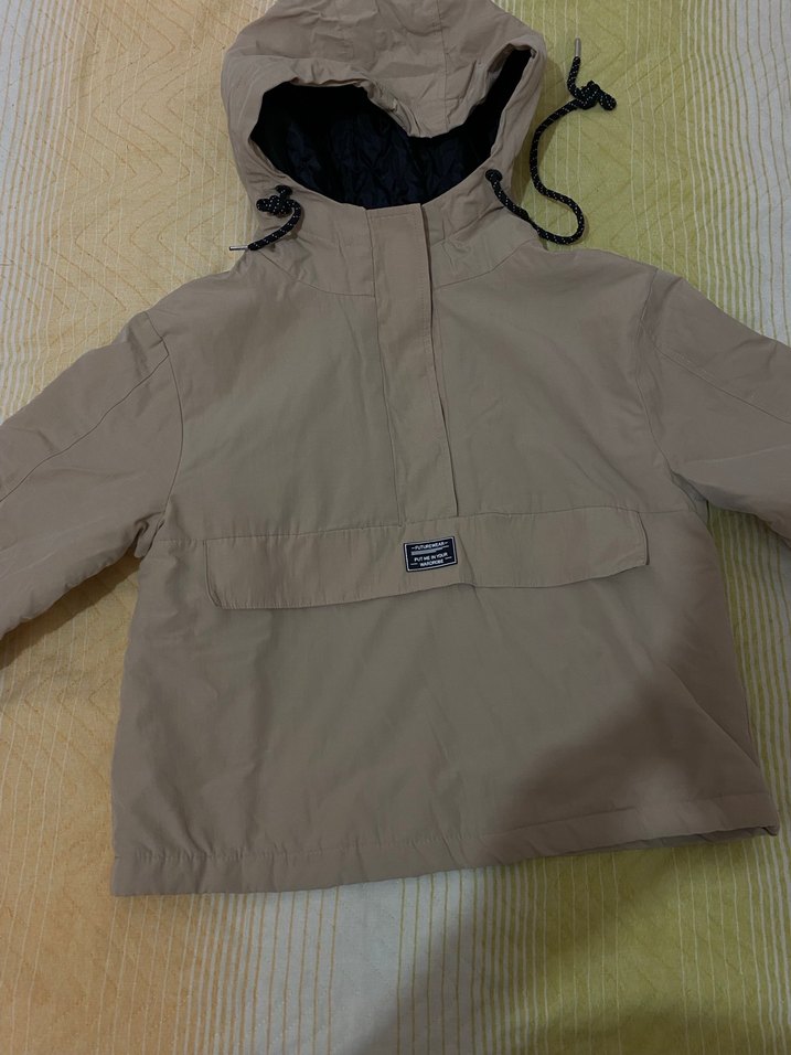 Bej renkli, kapüşonlu, uzun kollu, bol kesim kadın ceket. Sentetik kumaştan üretilmiş, fermuarlı ve rahat dış mekan kullanımı için uygundur. Koton üst çok beğenerek aldım ama kapalı olduğum için kombinleyemedim güzel durmadı etekle. Pantolonla çok güzel durur. 2 koltuk arası ölçü 52 cm, 2 bel dikişi arası 53 cm. Bir çıtçıtı çıkmış görselde mevcut. Koton mango zara suud collection manuka lcw defacto