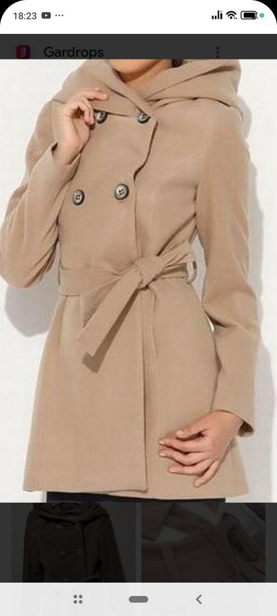 Bej renkte, kase kumaştan yapılmış, kesik yakalı ve düğmeli kadın midi boy ceket. Strappy kollu, normal kesim ve çağdaş tarzda, ofis için uygundur.