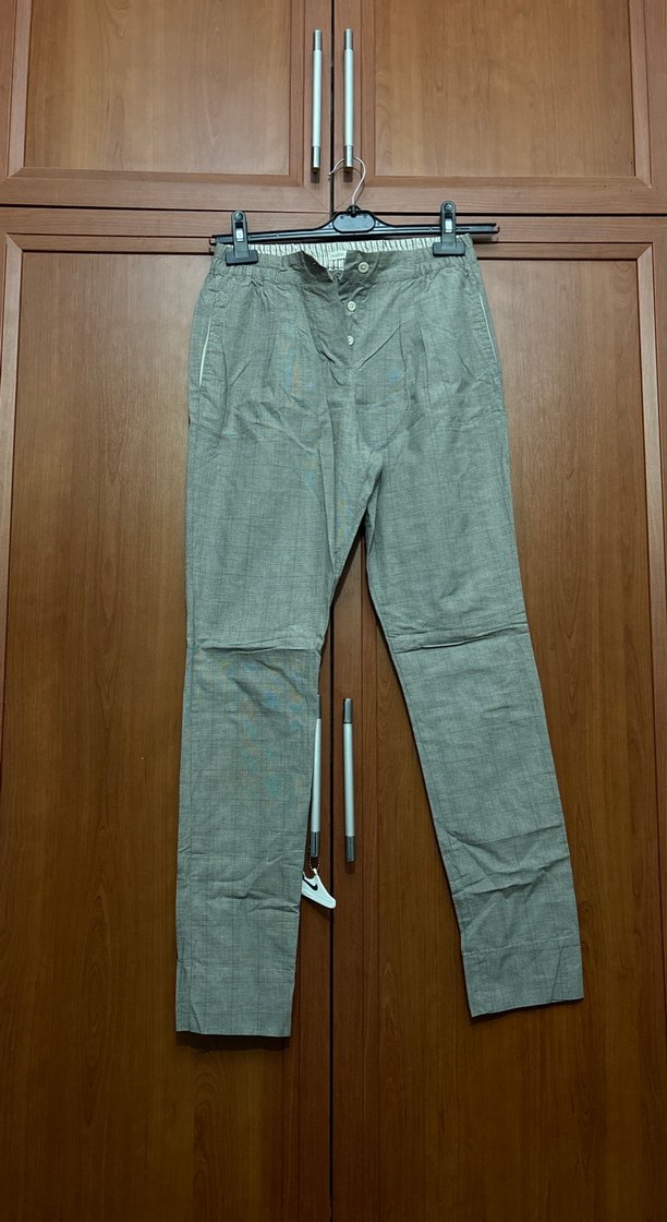 Bej renk, kemerli, normal boy midi kadın kumaş pantolon. İnce keten görünümlü,kareli,normcore tarzda, günlük kullanıma uygun.