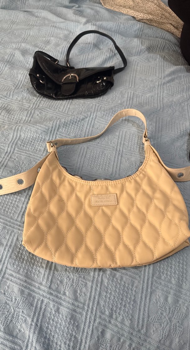 Bej renkli, kemerli ve kapitone desenli kadın çantası, yumuşak sentetik kumaştan üretilmiştir. Trendy sokak stiline ve günlük kullanıma uygundur.