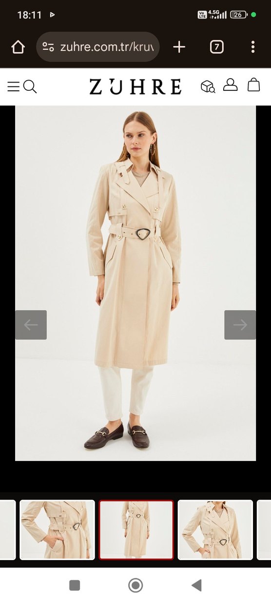 Bej Kadın Kemerli Uzun Trençkot
