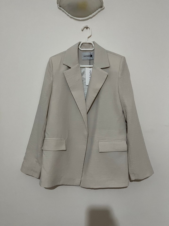 Bej keten kumaştan, düğmeli, kesik yaka blazer ceket. Uzun kollu, normal kesim ve midi boydadır. İş ortamı için uygun, sade ve şık tarzda. Hiç giyilmemiştir etiketi üstündedir