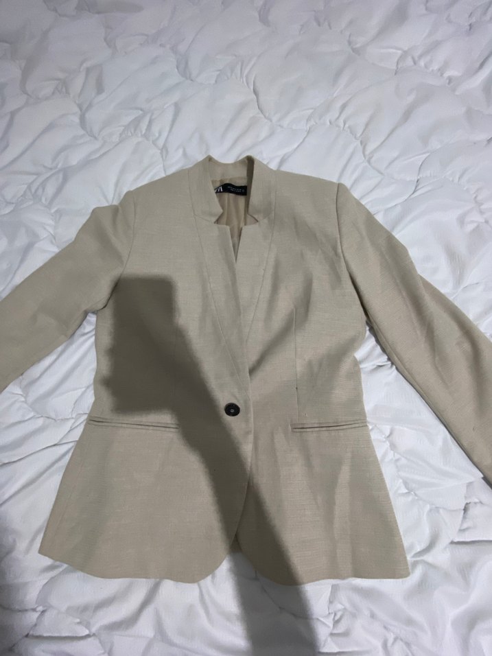 Bej Kadın Keten Blazer Ceket