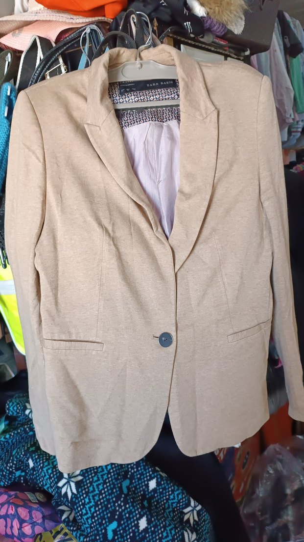 Bej renkte, keten kumaştan yapılmış kadın ceket. Düğmeli, normal boy ve uzun kolludur. Ofis ve günlük kullanıma uygundur.