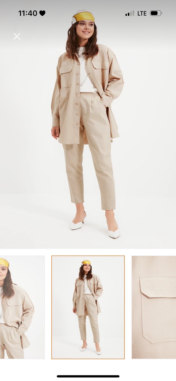 Bej Kadın Keten Cigarette takım