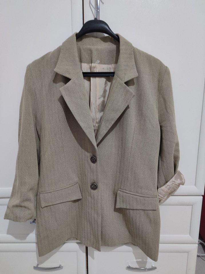Bej Kadın Keten Düğmeli Blazer Ceket