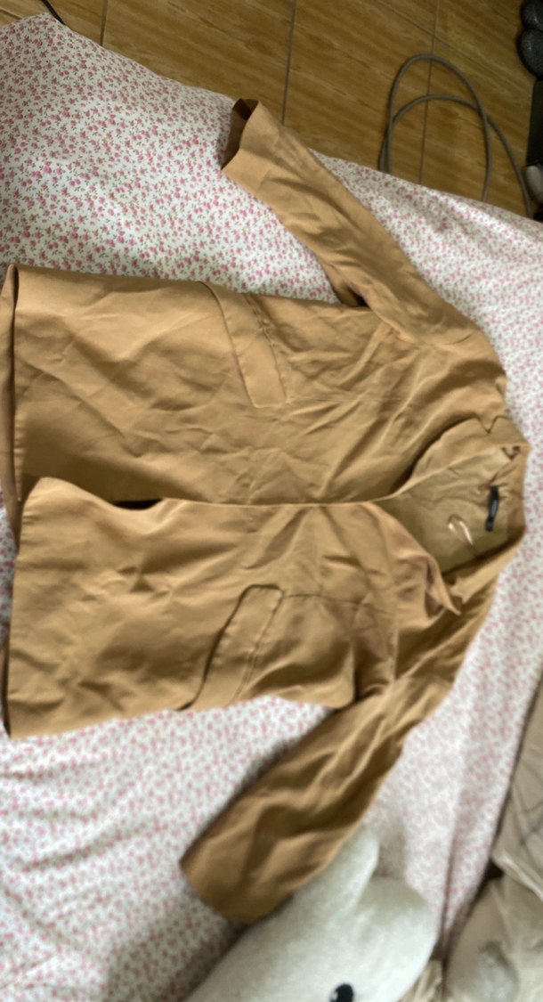 Bej renkte, keten kumaştan yapılmış, uzun kollu, düğmeli ve normal kesim kadın ceket. Rahat ve günlük kullanım için uygundur.