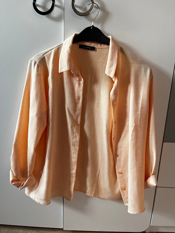 Bej renkte, keten kumaştan, düğmeli, uzun kollu ve yakalı gömlek. Salaş kesimi ve midi boyuyla günlük kullanıma uygundur. Minimalist ve desensiz tasarım.
