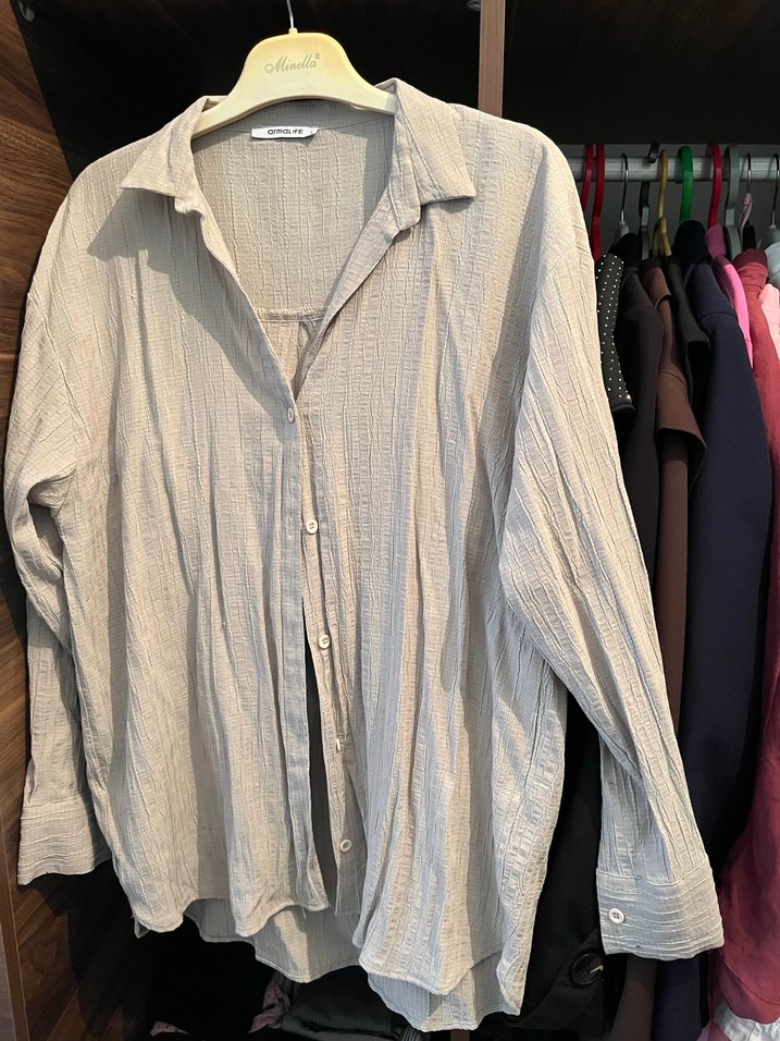 Bej Kadın Keten Gömlek