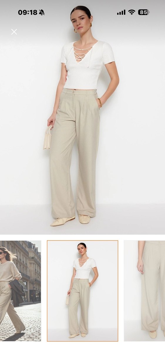 Bej keten kumaştan, normal boy ve regular fit kesime sahip kadın pantolon. Minimalist, çağdaş tarzı ve zahmetsiz şıklığıyla ofis için uygun. Ürün yeni etiketi var iade kodu olmadığı için gönderemedim