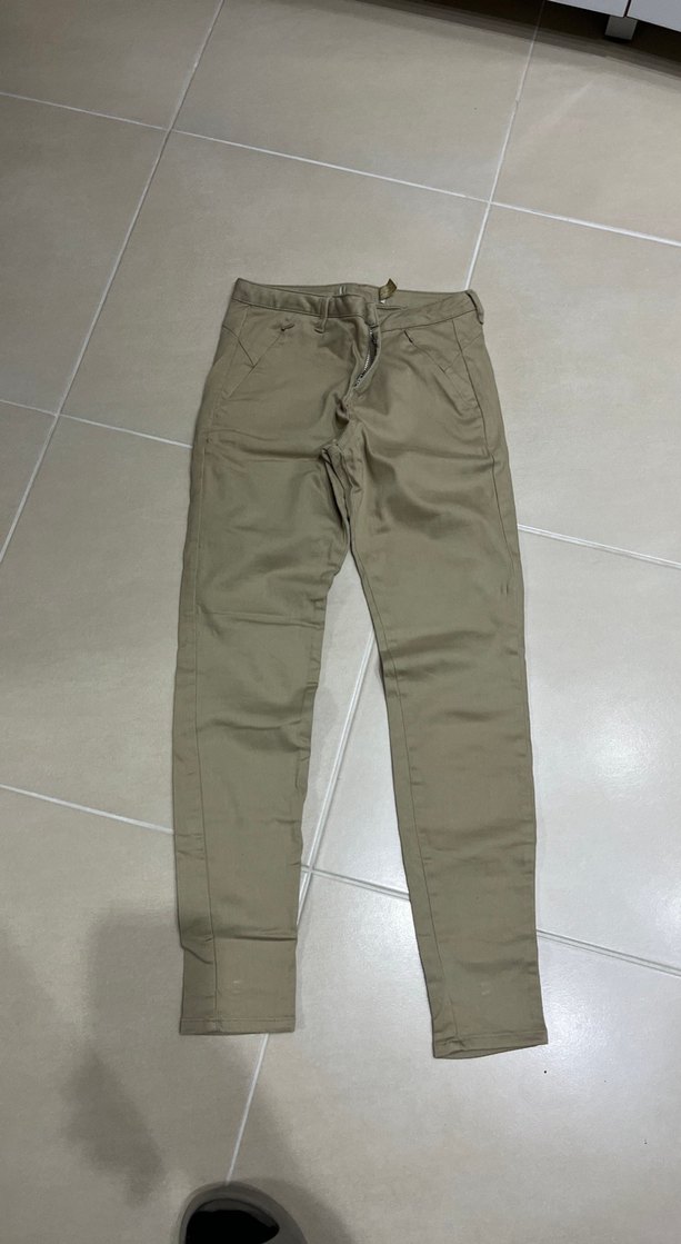 Bej renkli, keten kumaştan, midi boy, dar kesim kadın pantolon. Günlük kullanım için uygun, desen içermeyen şık ve rahat bir tasarım.
