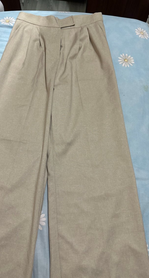 Bej keten kumaştan, regular kesim ve midi boyda kadın pantolonu. Minimalist, normcore tarzıyla ofis için uygun, zahmetsiz şıklık sunar.