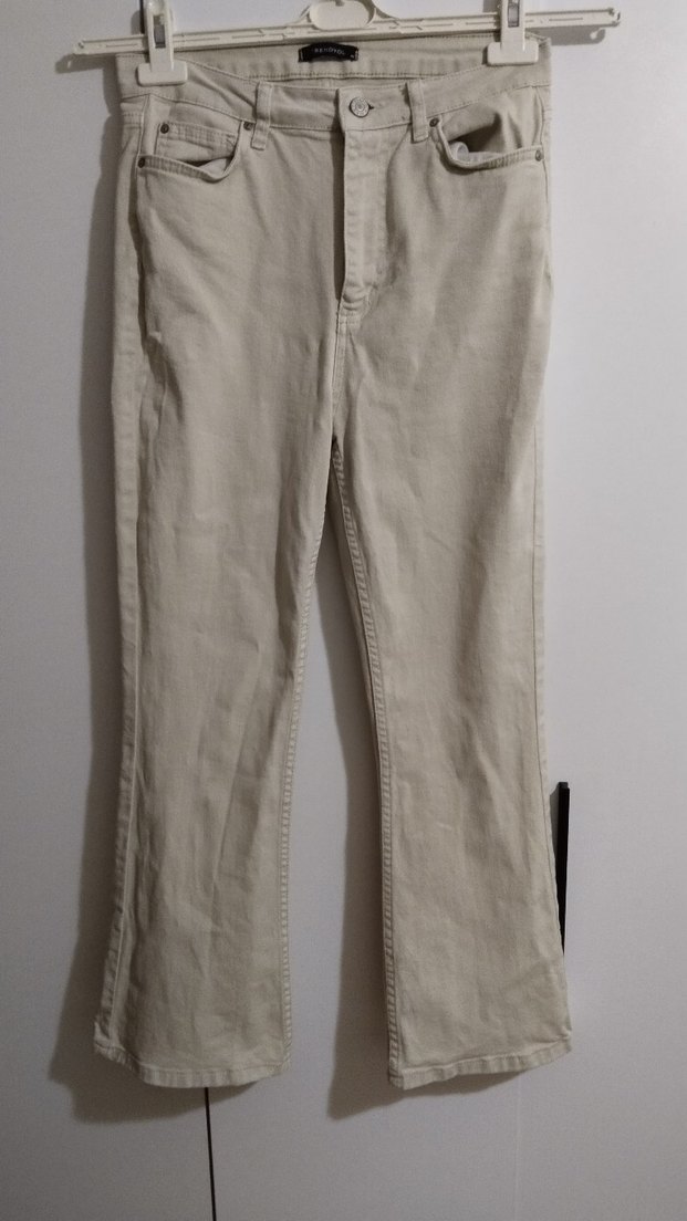 Bej kot, kısa boy ve regular fit kadın pantolon. Günlük kullanıma uygun, rahat ve şık görünümlü.