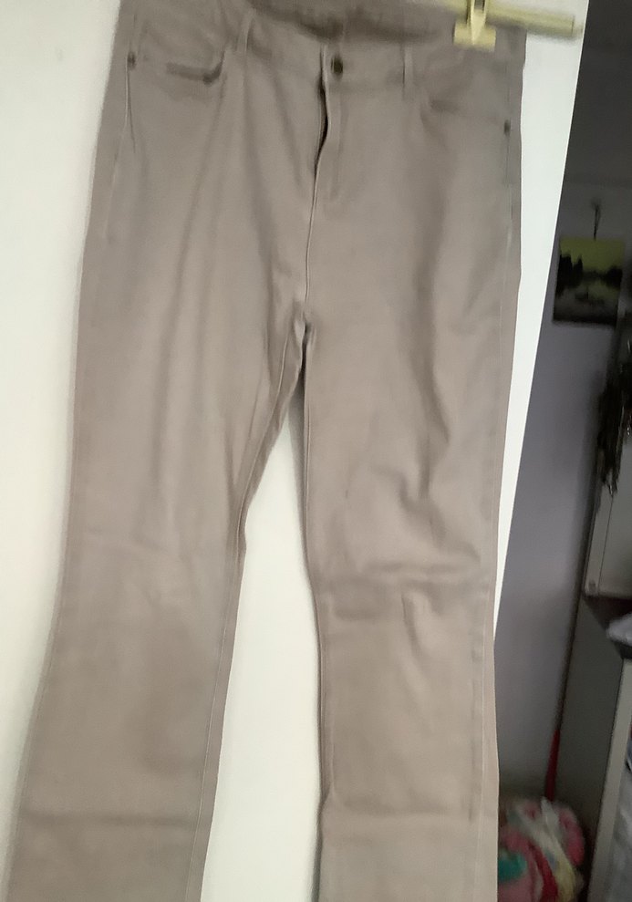 Bej renkte, keten kumaştan yapılmış, midi boy ve rahat kesim kadın pantolon. Günlük kullanıma uygundur.