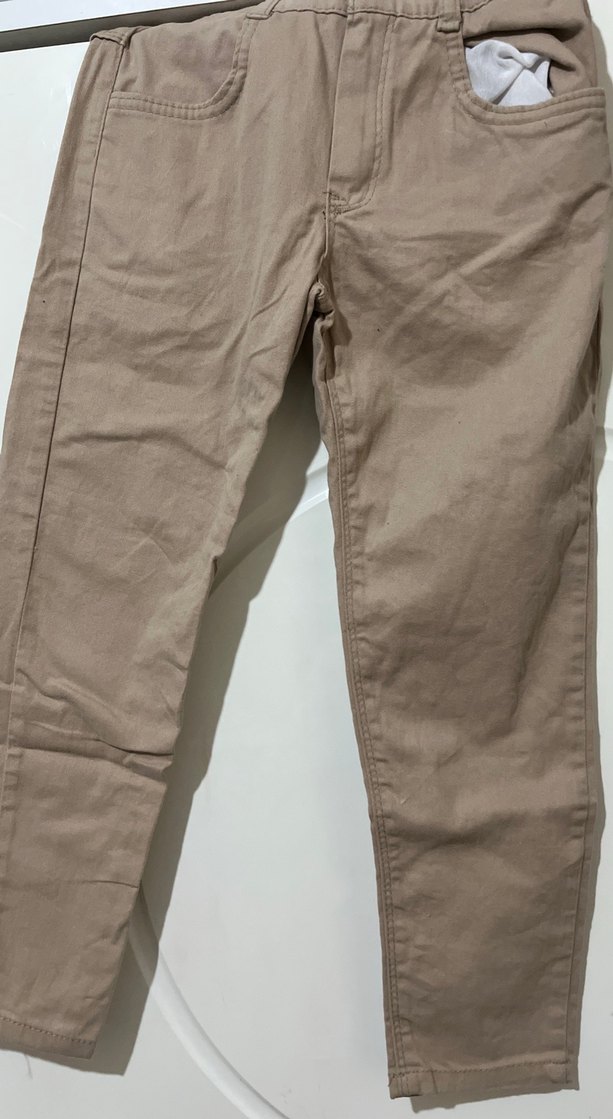 Bej keten kumaştan yapılmış, normal kesim ve midi boy kadın pantolon. Desensiz, gündelik kullanıma uygun rahat bir stil sunar.