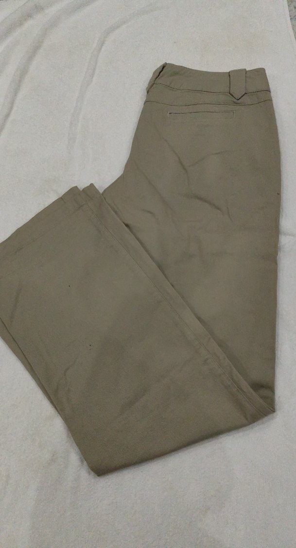 Ofis için uygun, bej renk keten kumaştan, normal boy kesim, rahat ve sade kadın pantolonu. spor