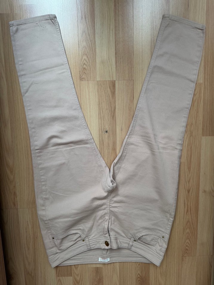 Bej keten kumaştan, normal boy ve regular fit kesime sahip kadın pantolon. Düz desensiz, günlük kullanım için uygun, minimalist ve normcore tarzda, zahmetsiz şıklık sunuyor.