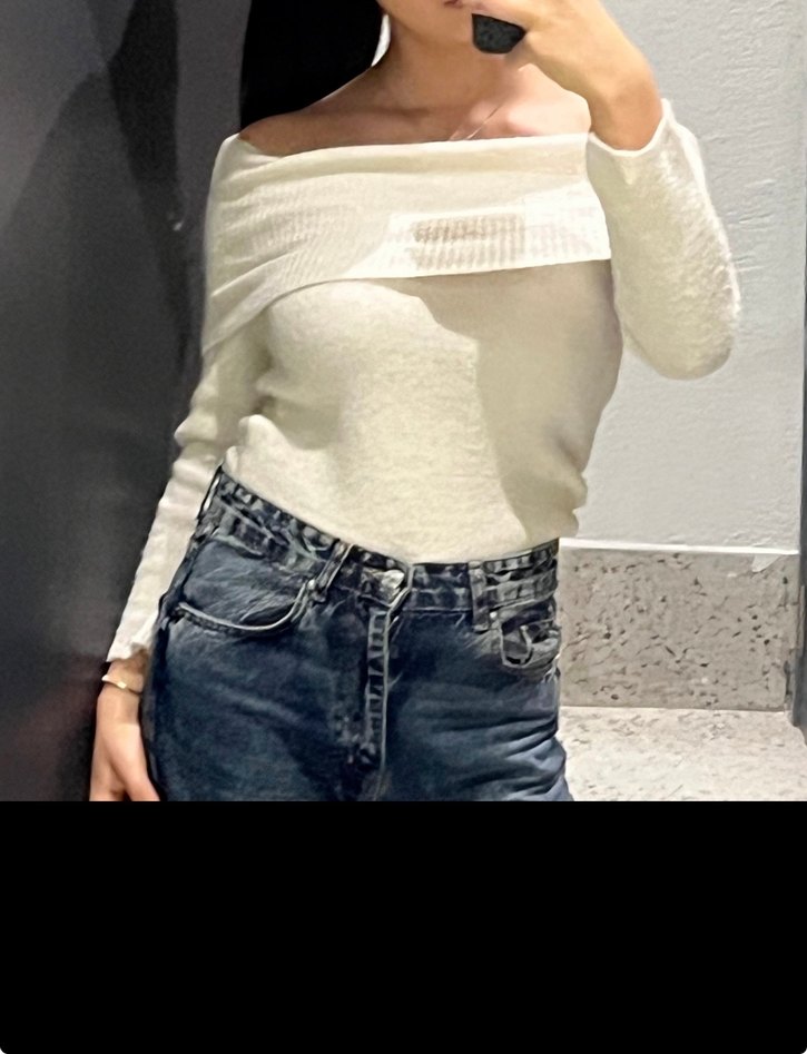 Bej keten triko bluz, salaş kesim ve uzun kollu. Kayık yaka ve örgü dokusu ile günlük kullanıma uygun çağdaş stil sunar. Madonna yaka