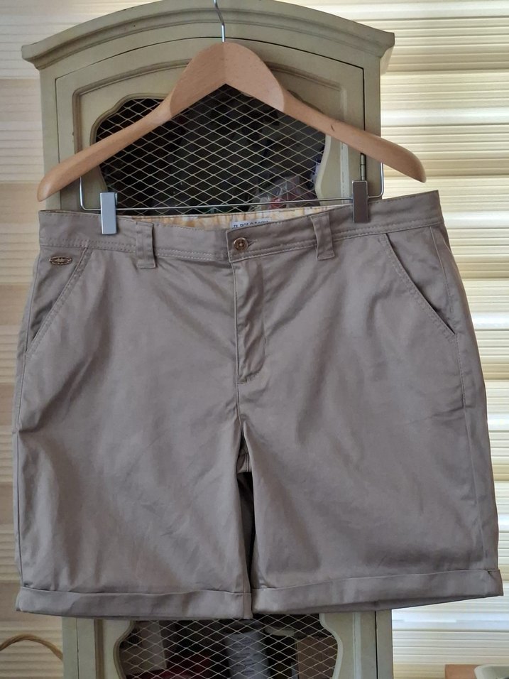 Bej renkli, keten kumaştan, bol kesim ve midi boy kadın şort. Günlük kullanıma uygun, düz ve tokalı detaylı rahat bir model. Beden değişikliği nedeniyle kullanılamadı , yepyeni , tertemiz