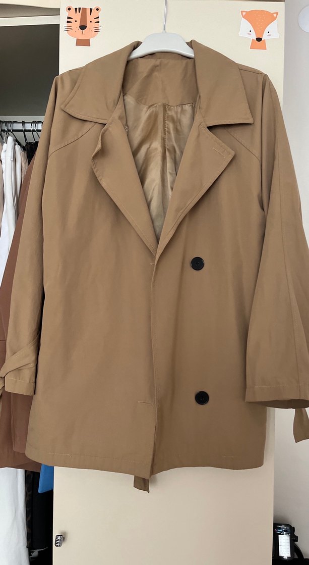 Bej keten midi uzunlukta, düğmeli, uzun kollu ve normal kesim kadın trençkotu. Desensiz, Paris tarzı günlük kullanıma uygun rahat bir modeldir.