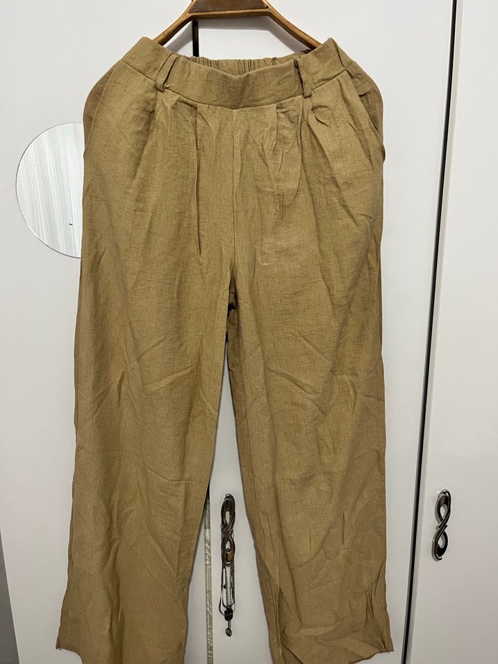 Bej Kadın Keten Pantolon