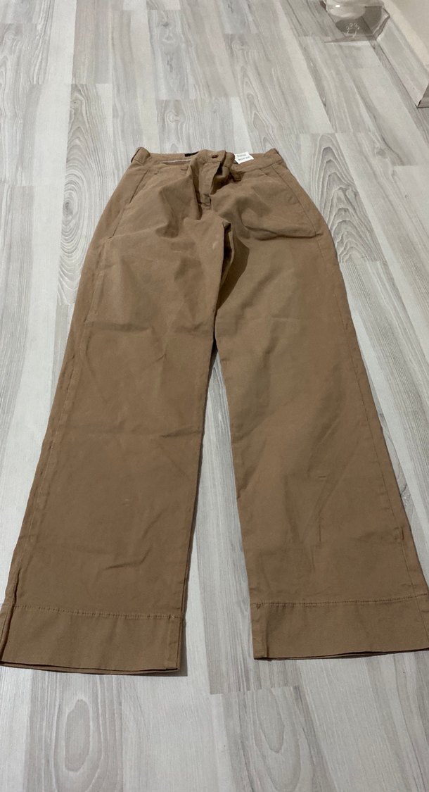 Bej renkte keten kumaştan, rahat kesim midi boy kadın pantolon, günlük kullanım için uygun, sade ve şık görünümlü.