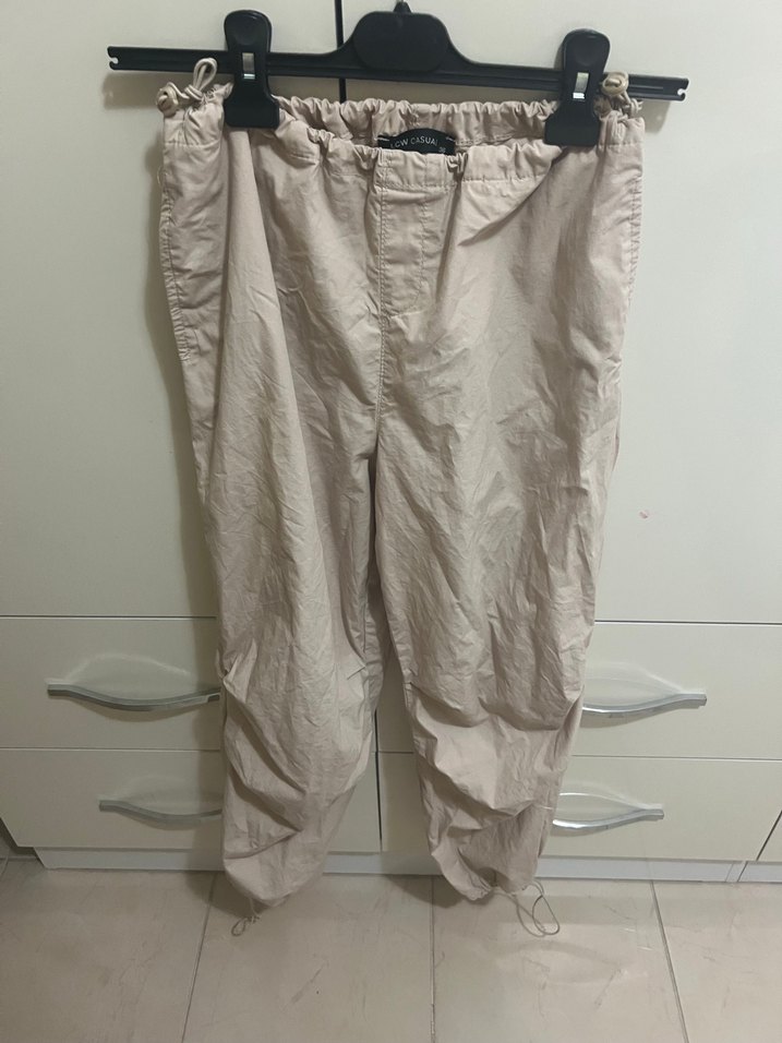 LCW Bej keten kumaştan, rahat kesimli kadın pantolonu sokak stilinde gündelik dış mekan kullanımı için uygundur. Lastikli bel ve bilek pantolon yeni sayılır bu yaz bikaç kez giydim.