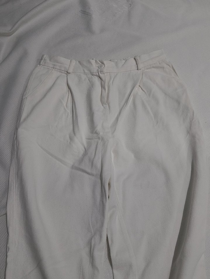Bej renkli keten kumaştan, rahat kesim ve midi boy kadın pantolon. Desensiz, sade tasarımıyla günlük kullanıma uygun. arka içinde etiketin olduğu yerde katlanan kısımda sokulme var giyime engel değil belli olmuyor