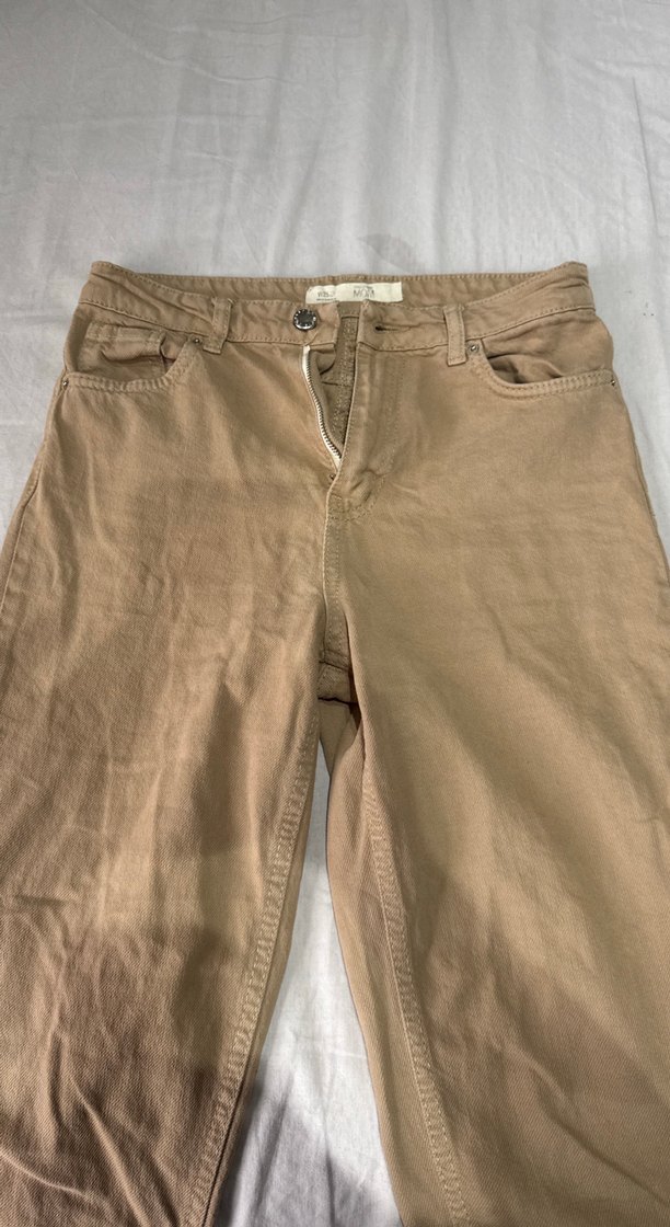 Bej renkli, keten kumaştan yapılmış kadın regular fit pantolon. Düz ve desensiz yapısıyla günlük rahat kullanıma uygundur. Midi boyda.