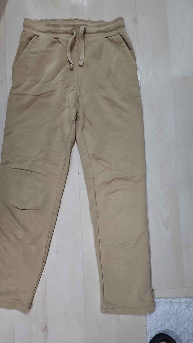 Bej keten kumaştan, salaş kesim, bağcıklı bel detaylı kadın pantolonu, günlük kullanıma uygun rahat ve şık.
