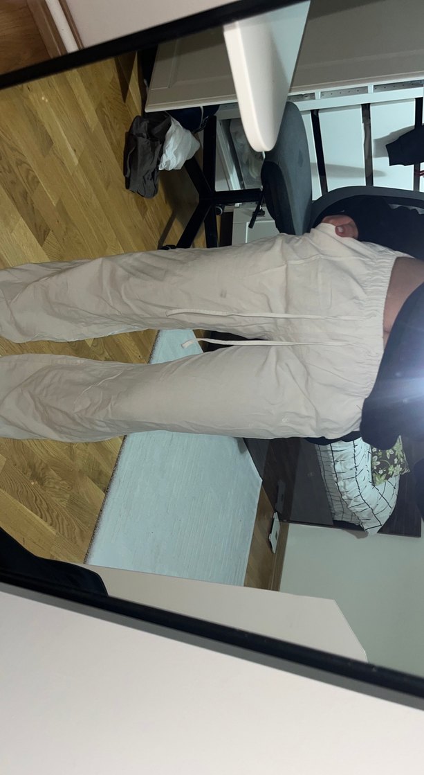 Bej renkte, keten kumaştan yapılmış, midi boy ve salaş kesime sahip kadın pantolon. Günlük kullanım için rahat ve şık bir sokak stili sunar.