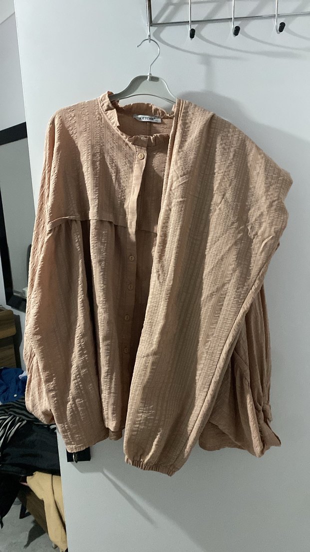 Bej Kadın Keten Salaş Uzun Kollu Gömlek takım