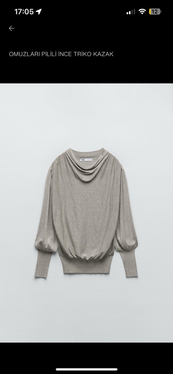 Bej ince kumaştan, salaş kesim, uzun kollu ve drapeli yuvarlak yaka kazak, rahat ve modern tarz sunar.