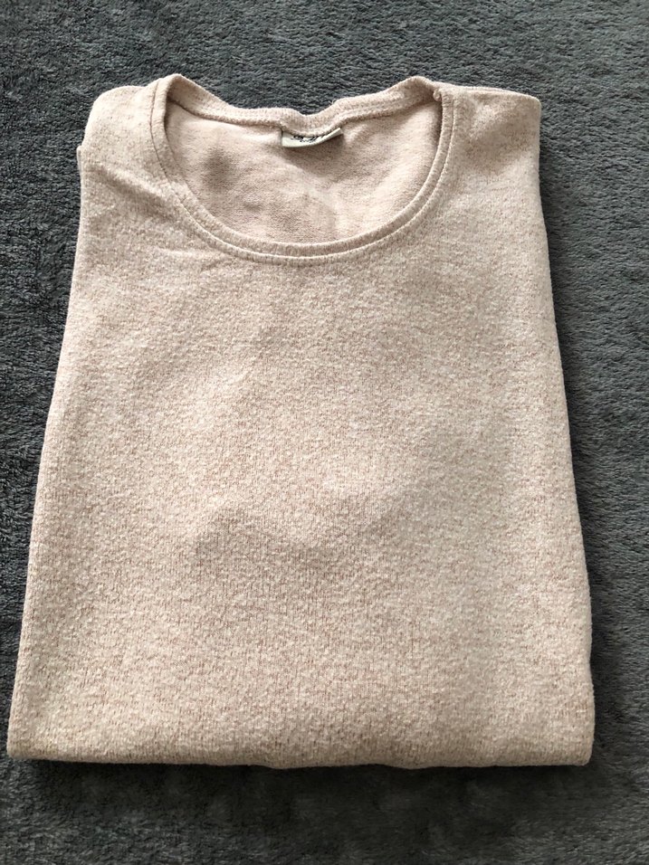 Bej renkli, keten kumaştan, bisiklet yaka ve uzun kollu kadın kazak. Rahat kesimi ve desensiz tasarımıyla günlük kullanıma uygundur.
