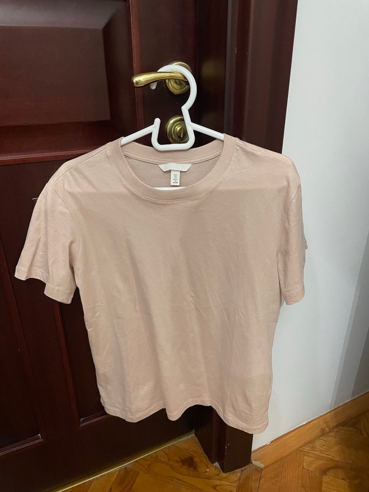Bej renkte, kısa kollu, yuvarlak yaka pamuklu kumaştan kadın tişörtü. Salaş kesimi ve minimal tarzıyla günlük rahat kullanıma uygundur.