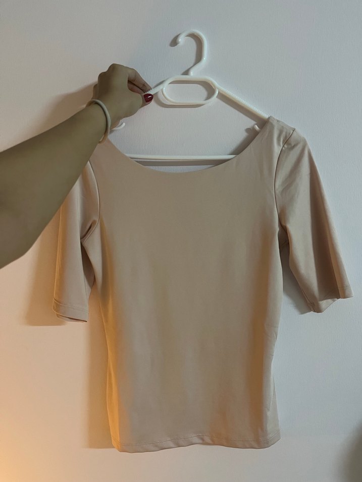Bej renkte, yuvarlak yaka ve kısa kollu, dar kesim kadın tişörtü. Düz ve sade tasarımıyla günlük sokak stiline uygun, midi boyda, rahat sentetik kumaştan üretilmiştir. sırt dekoltesi var iade tarihi geçtiği için satıyorum