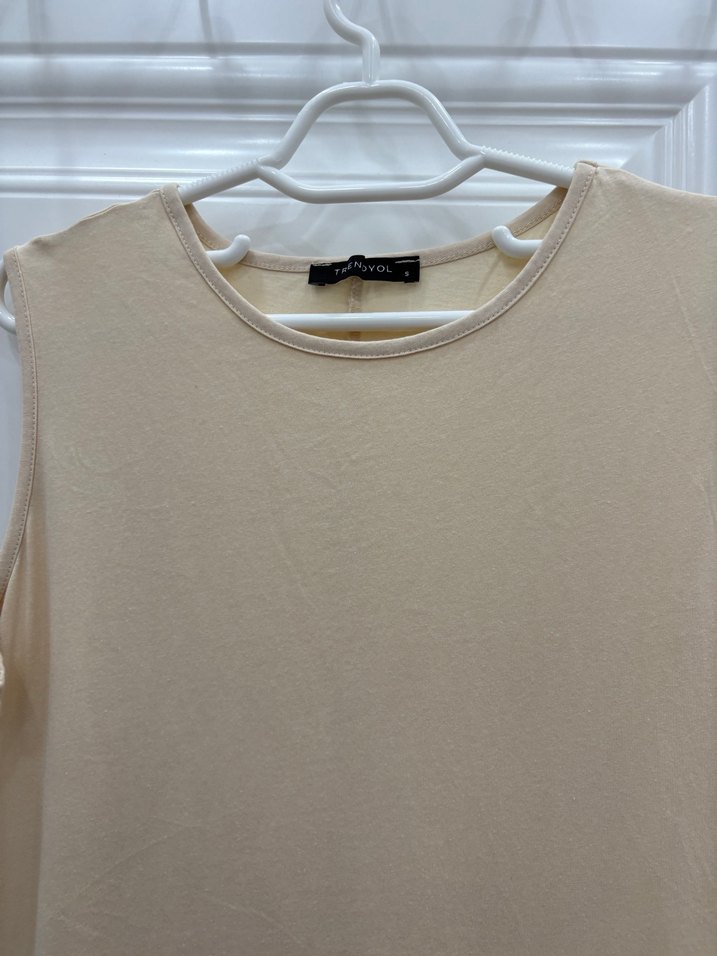 Bej renkli, yuvarlak yakalı ve kısa kollu kadın tişörtü, pamuklu yumuşak kumaştan üretilmiştir. Salaş kesimi ve desensiz tasarımı ile günlük kullanım için uygundur.