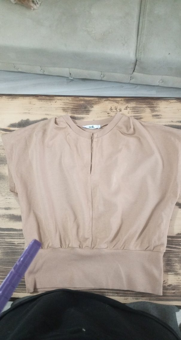 Bej renkte, yuvarlak yakalı ve kısa kollu kadın tişörtü. Salaş ve kısa kesimiyle rahat bir kullanım sunar. Yumuşak sentetik kumaştan, günlük sokak stiline uygun sade tasarım.