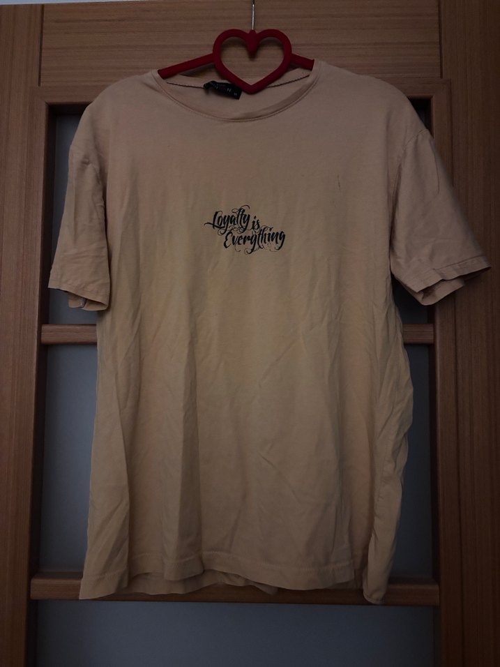 Pamuklu, bej kısa kollu kadın tişörtü, bol kesim ve yuvarlak yakalı. Baskılı deseni ve yumuşak pastel tonu ile rahat sokak stili için uygundur.