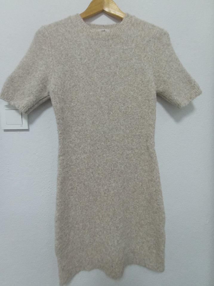 Bej Kadın Kısa Kollu Yün Elbise