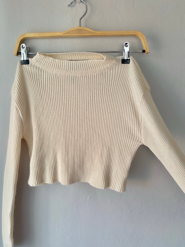 Bej Kadın kısa Triko Kazak Uzun Kollu