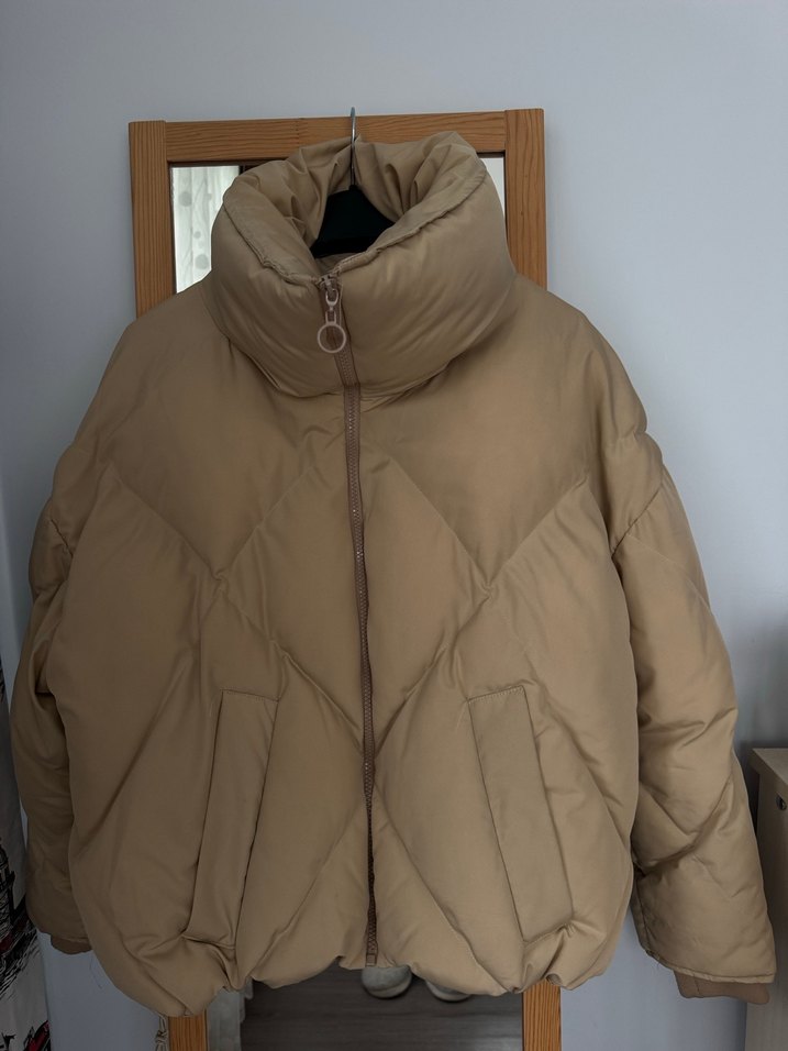 Bej renkte, yüksek yakalı, fermuarlı kadın mont. Genç ve gündelik sokak stili için uygundur. S bedendir. Kusurları resimde görünüyor zaten. Kollarında hafif tüylenme ve kirlenme mevcut. Yıkandığında geçecektir.