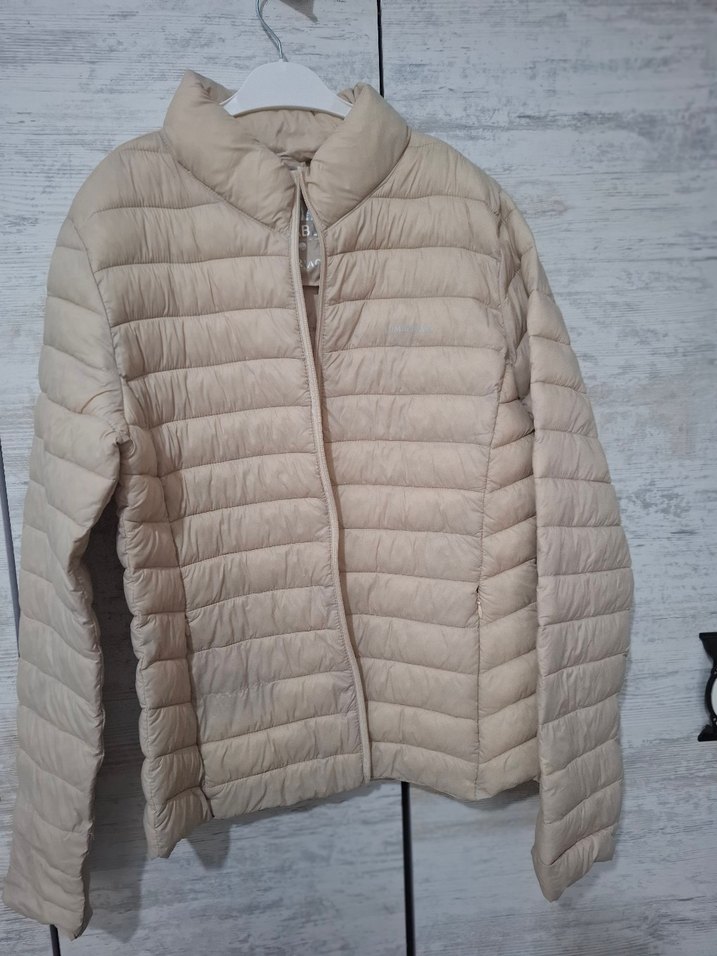 Yumuşak sentetik kumaştan, fermuarlı, uzun kollu bej kışlık mont. Normal midi boyda, dar kesim ve yuvarlak yaka. Günlük sokak stiline uygun. ❄️