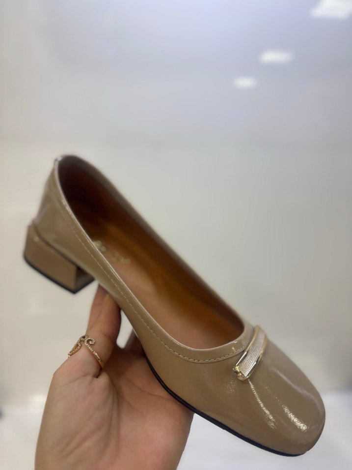 Bej Kadın Klasik Tokalı Topuklu Babet