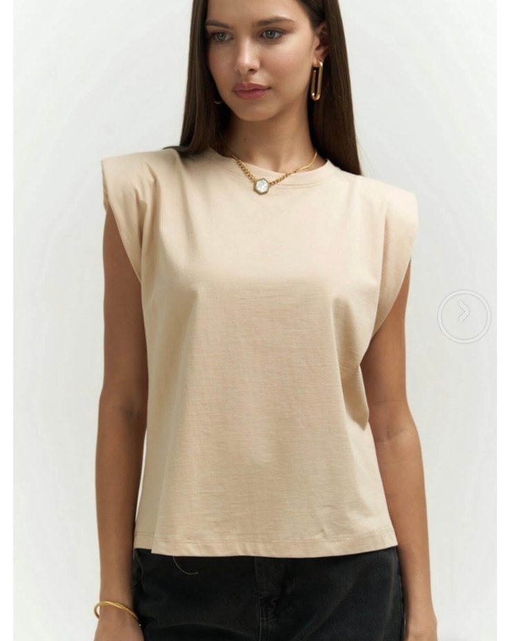 Bej Kadın Kolsuz Basic Tişört