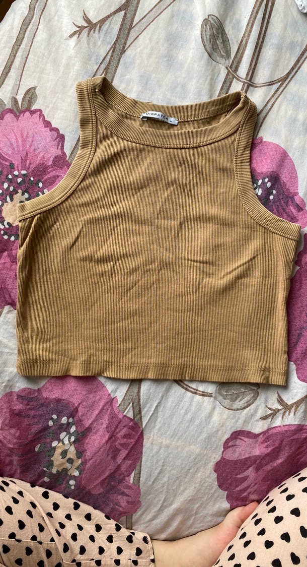 Bej Kadın Kolsuz Crop Top
