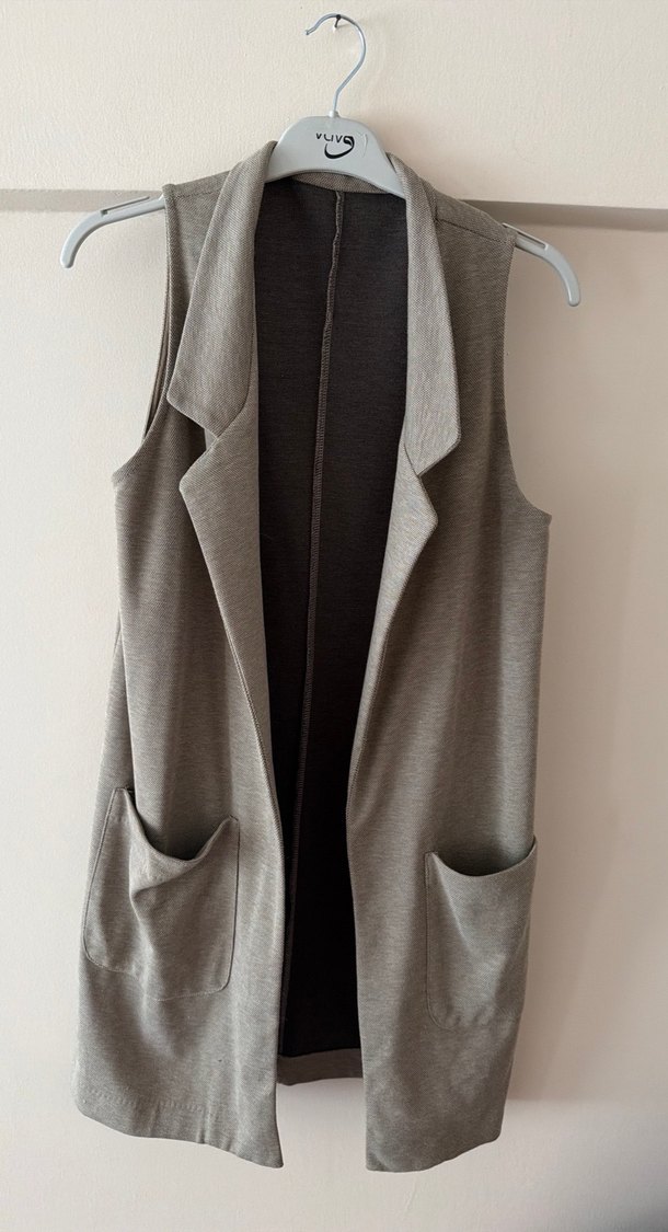 Kolsuz, notched yaka ve drapeli tasarıma sahiptir. Rahat kesim ve iki cep bulunur, günlük rahat stil için idealdir.