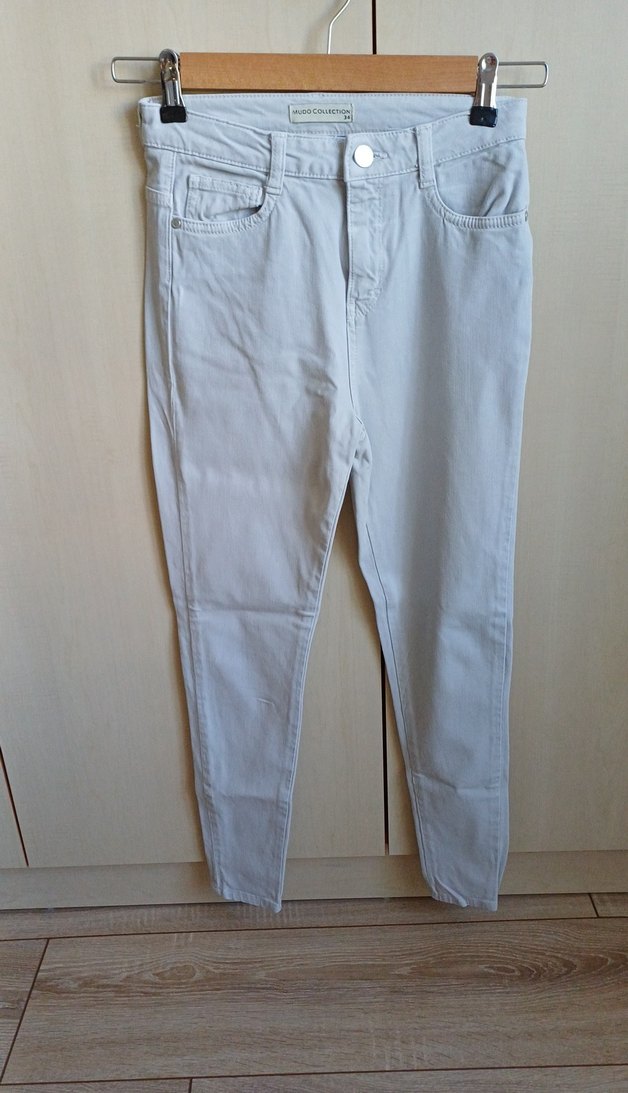 Bej renkte,düzenli kesim, likralı kadın kot pantolon. Günlük kullanıma uygun, yumuşak ince denim kumaştan, desen içermeyen normcore tarzda.